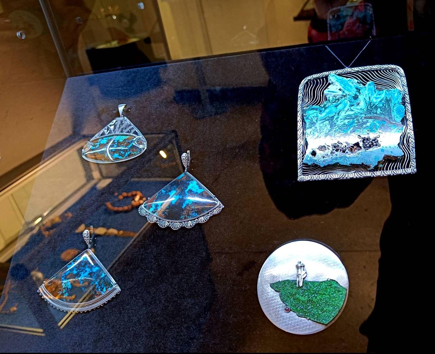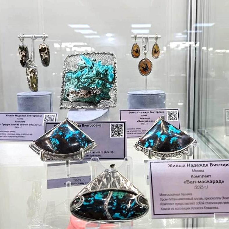 В экспозиции участвуют сразу 5 украшений Надежды! Очень приятно, что все ее произведения успешно прошли строгий отборочный конкурс, который проводили ведущие искусствоведы России.